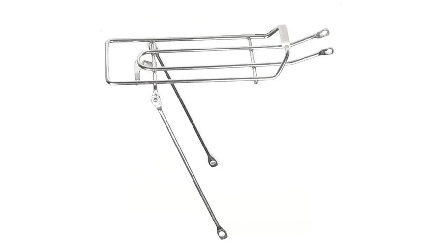 Acél csomagtartó 20"-os kerékmérethez, króm színben. 50mm-es furatszabvány van rajta prizmának/lámpának.